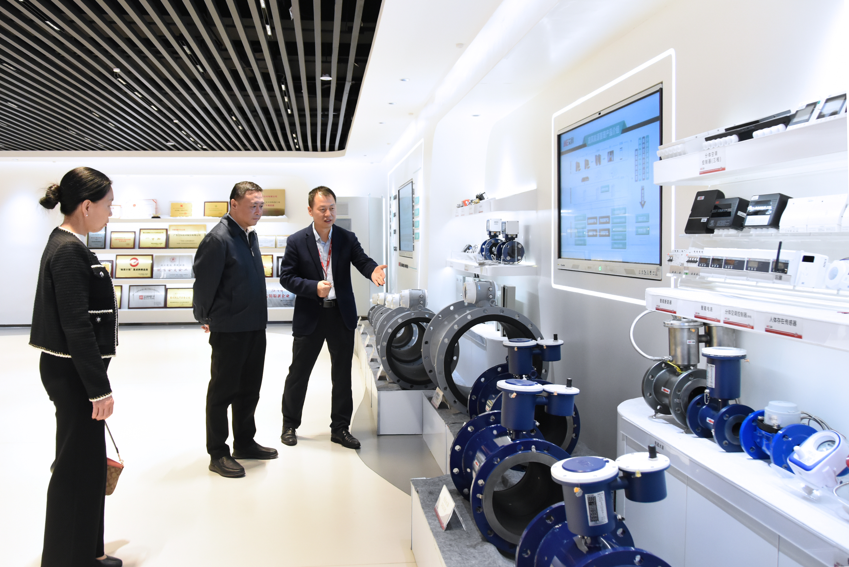 在艾科產(chǎn)品體驗中心,公司總經(jīng)理張江民重點介紹了艾科發(fā)展歷程、業(yè)務板塊布局等發(fā)展情況,隨后進一步參觀了艾科0.2級電磁流量計、一級電磁熱量表、智能電表、電磁水表等核心硬件產(chǎn)品的優(yōu)勢性能、創(chuàng)新功能,特別介紹了艾科近年來協(xié)助中信環(huán)境技術(shù)建設的的潮南園區(qū)平臺、集團級智慧水務管理平臺情況以及為各區(qū)域公司提供智能儀表和自控系統(tǒng)改造服務情況。通過展示與交流,趙翔對艾科在智能儀表自控方面的產(chǎn)品創(chuàng)新能力和豐富經(jīng)驗給予了充分認可。