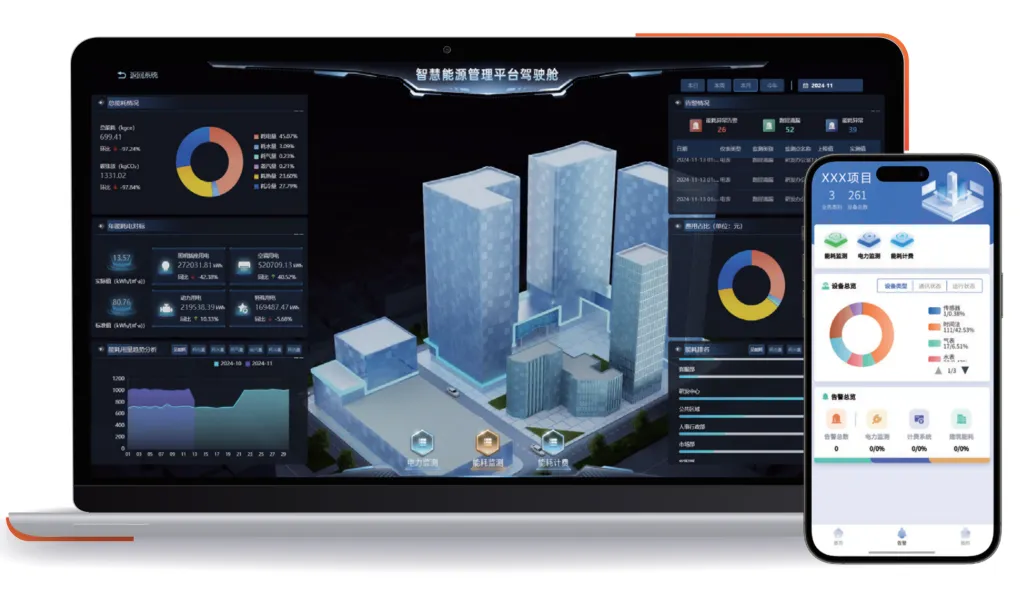 利用各種傳感器和智能設備,實現對建筑物或建筑群體的冷熱源、空調系統、送排風、給排水等各種機電設備的運行、安全狀況、能源使用狀況實行集中監管,讓能源管理更加集成化、智能化、數字化、可視化。