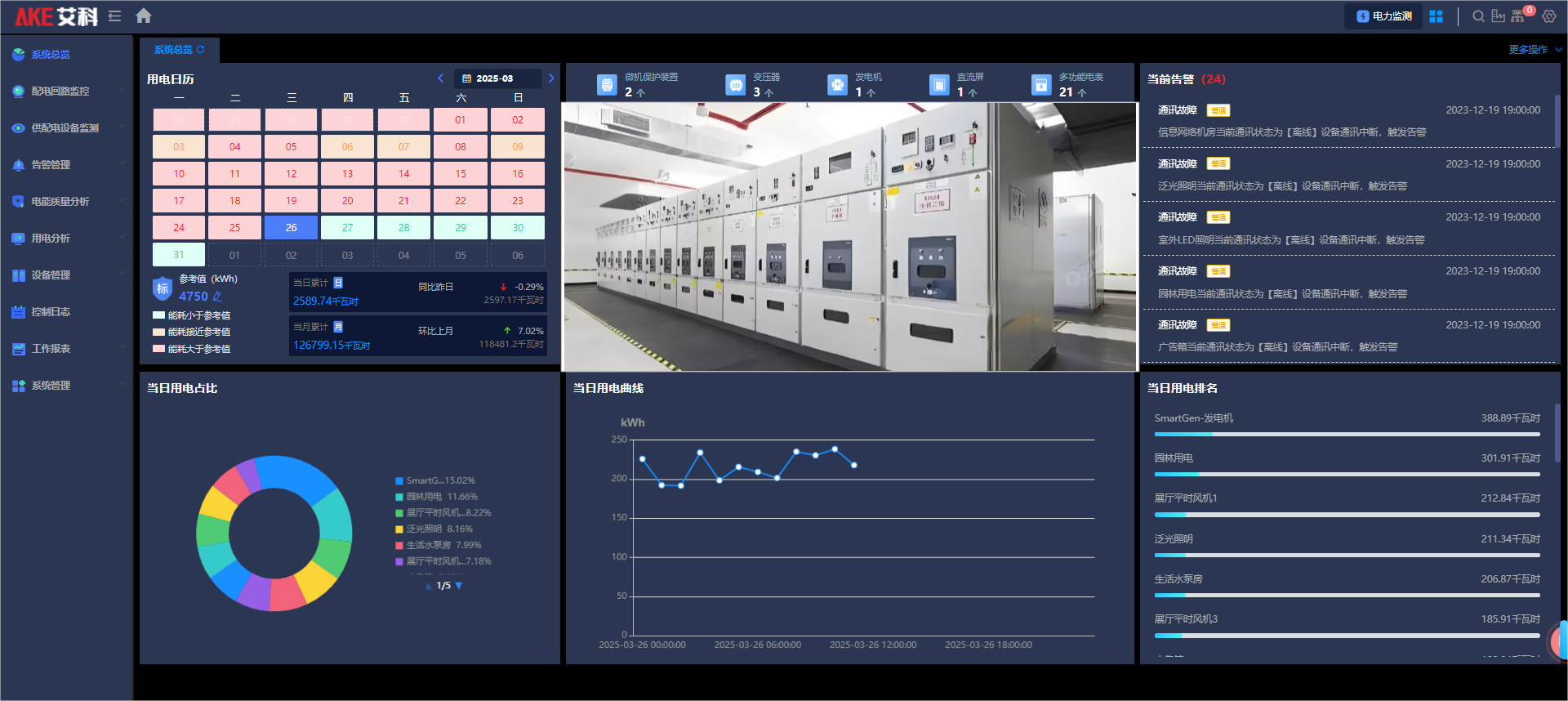 基于智能設備實時監測變配電系統運維狀態,實現全方位的智能監測、智能化故障預警、便捷化運行管理、全面的電能質量監測與分析,保障園區供電安全穩定。