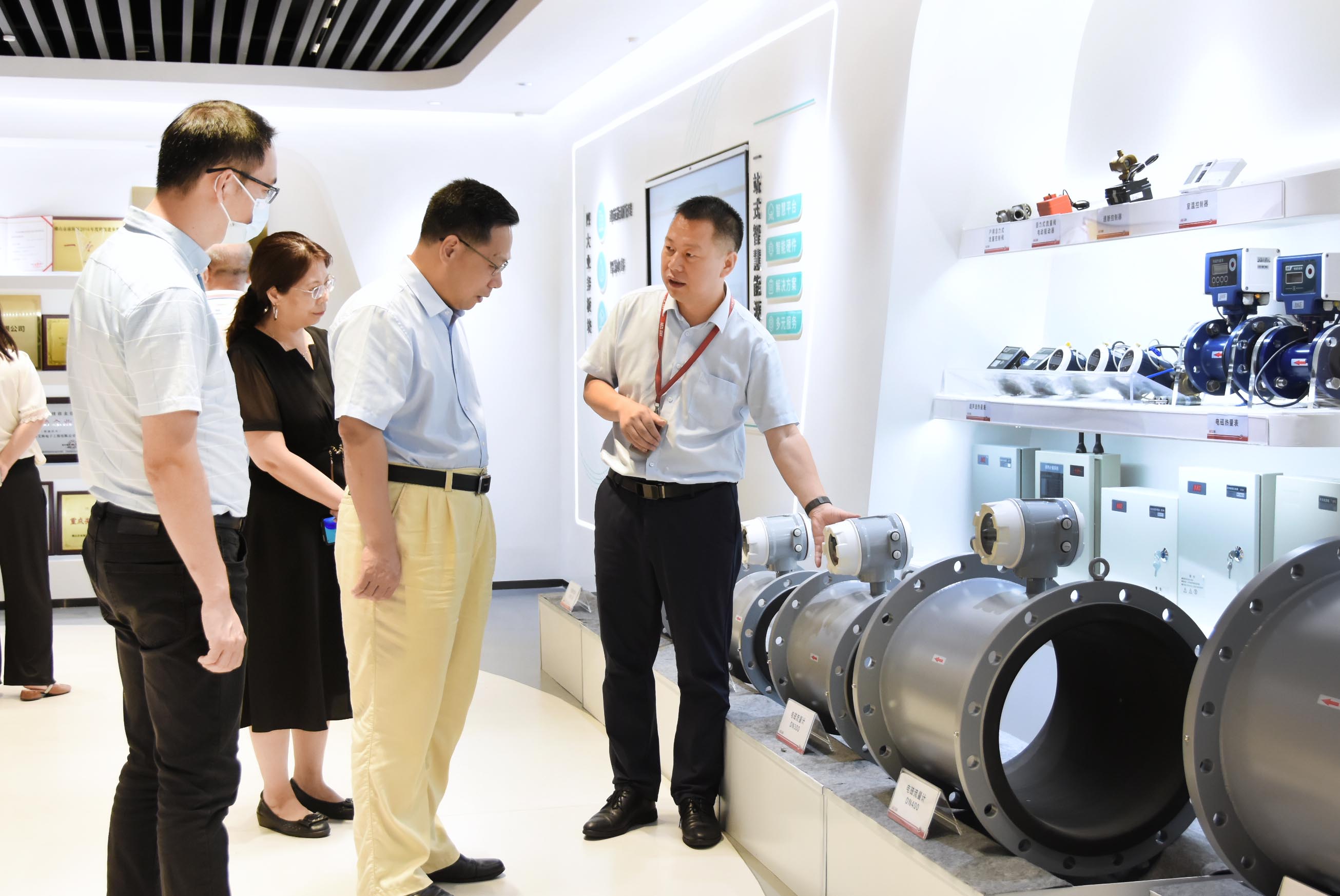 領導團一行先后參觀了公司辦公區域,在艾科產品體驗中心,重點介紹了艾科歷史沿革、整體業務布局、核心硬件產品,現場演示了自主研發的數字化管理平臺的功能,通過展示與交流,學院領導也對艾科在科研實力、制造能力、團隊建設、工作環境等方面的情況有了更加深刻、全面的認識。