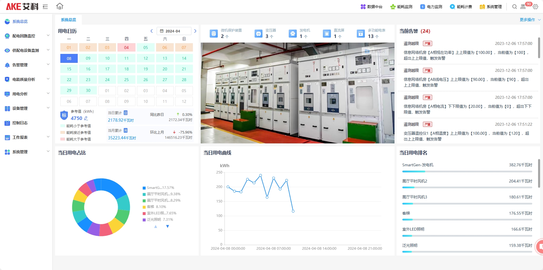 基于智能設(shè)備實時監(jiān)測變配電系統(tǒng)運維狀態(tài),實現(xiàn)全方位的智能監(jiān)測、智能化故障預(yù)警、便捷化運行管理、全面的電能質(zhì)量監(jiān)測與分析。系統(tǒng)主要是對用戶變配電站正常運行和事故狀態(tài)進行實時監(jiān)控,實現(xiàn)遙測、遙信、遙控功能;系統(tǒng)支持報表打印功能,越限和事故報警功能,事故追憶、生成用電報告、諧波分析、三相不平衡分析等功能,可進行數(shù)據(jù)采集與處理,完成配電自動化控制功能,傳送遠動信號與數(shù)據(jù),接收調(diào)度遙控命令,以及其它一些運行管理功能。