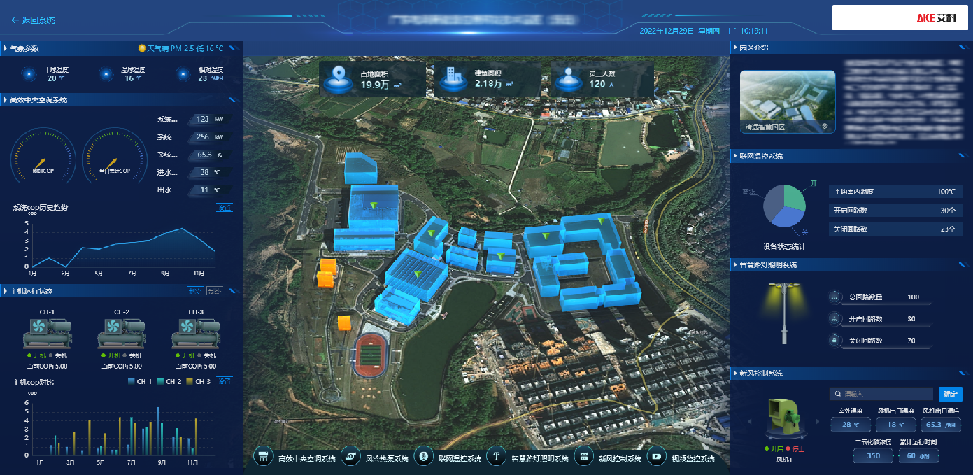 艾科以園區管理需求為中心,建設綜合智慧能源管理平臺,整合高效中央空調系統、聯網溫控系統、智慧路燈照明系統、新風控制系統、視頻監控系統、風冷熱泵系統,有效提升園區能源利用效率與管理水平,助推園區能源數字化轉型與智能化升級。