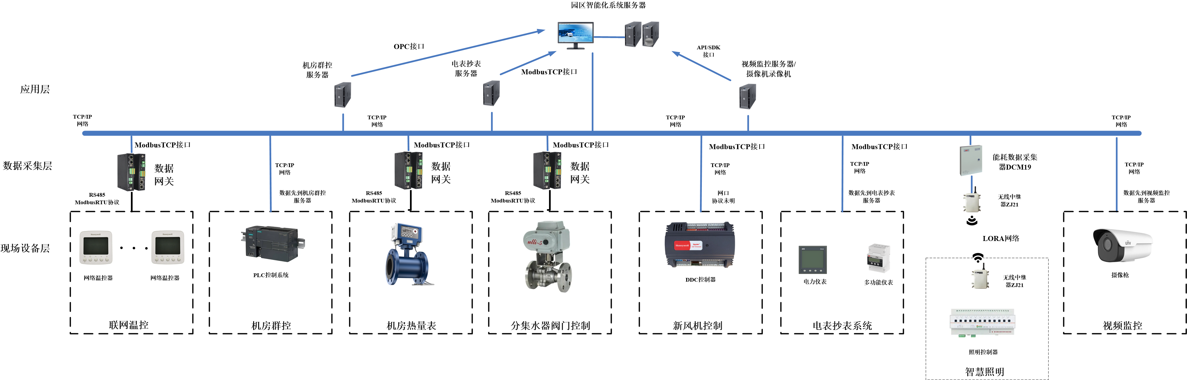 機房群控服務器、視頻監控服務器數據提供軟件數據接口,將數據集成到園區綜合智慧能源管理平臺。
