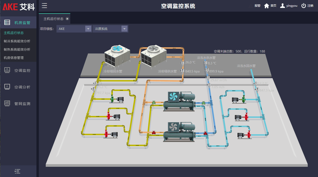 對建筑中的主要設備建立通訊并進行可視化展示,實現(xiàn)智能控制。通過系統(tǒng)平臺可以對設備進行遠程集中管理,如對不同區(qū)域空調進行啟停、溫度設定、模式設定等操作,實現(xiàn)精準控制,減少能耗浪費。