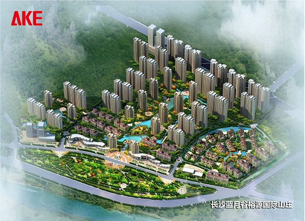長沙藍月谷裕源國際山莊位于寧鄉縣東部,緊臨金洲大道,建筑面積80平方米,占地面積400平方米。小區采用山水庭院式的水景園林,并尊重當地的依山傍水的自然環境,充分發揮小區內現有的自然水系環境優勢,保護現有山體植被,開發與建設密切結合地形,顯山露水,創造出別具一格的城市生活空間。