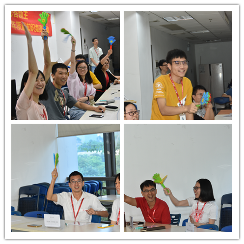 進入決賽的五組選手抱著必勝的信心,快速搶答,奮力沖刺。研發(fā)組以過硬的實力力壓全場,但是其他小組也毫不示弱,組員間默契配合全力反擊,現(xiàn)場氣氛一度十分熱烈!