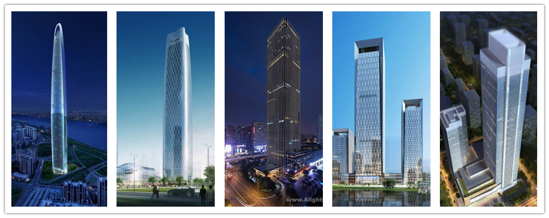 武漢綠地中心、長沙富興世界金融中心、重慶俊豪ICFC、鄭州楷林國際廣場(chǎng)、長沙運(yùn)達(dá)中央廣場(chǎng)等