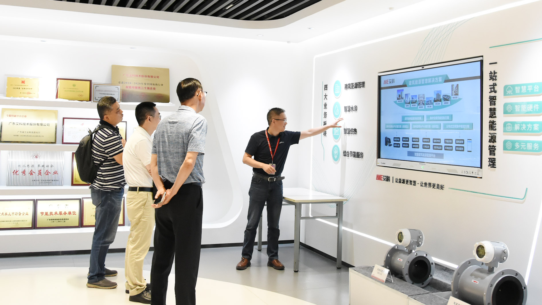 在艾科產品體驗中心,艾科副總經理李飛龍全面介紹了公司的發展歷程、業務布局,現場講解了艾科自主研發的0.2級電磁流量計、1級電磁熱量表、風盤控制器等核心硬件產品的優勢性能、節能技術創新點以及成果應用案例。